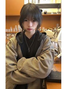 双面穿千鸟格开衫卫衣男款春秋潮牌美式复古拉链连帽cleanfit外套