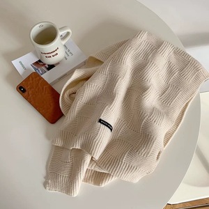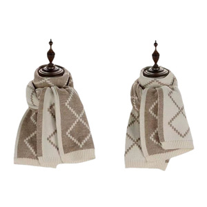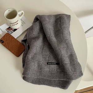 菱形格子围巾女秋冬季新款韩版毛线针织百搭保暖双面学生围脖加厚