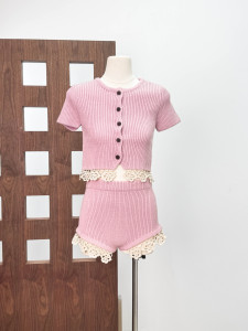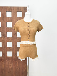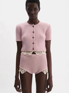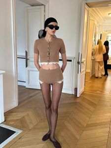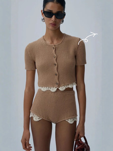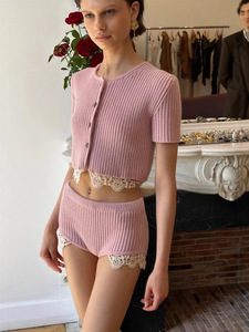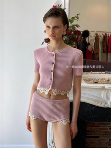 M@GDA BUTRY 2025Aw设计感秋季新款短袖针织开衫+蕾丝边短裤套装