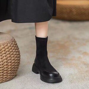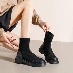 弹力马丁靴女2025秋冬新款短靴时尚百搭复古显瘦小个子粗跟瘦瘦靴