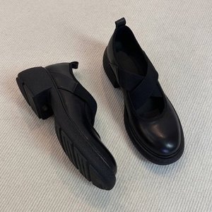 羊皮版~软底法式浅口单鞋女2025秋新款粗跟复古厚底增高玛丽珍鞋