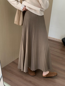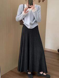高腰显瘦加厚针织百褶半身裙2025冬季新款韩版百搭休闲淑女风伞裙