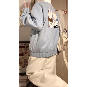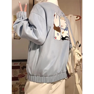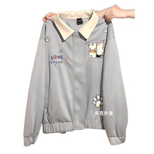 日系卡通小猫毛巾绣翻领卫衣女2025早秋新款慵懒风宽松bf开衫外套
