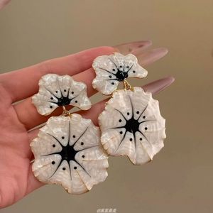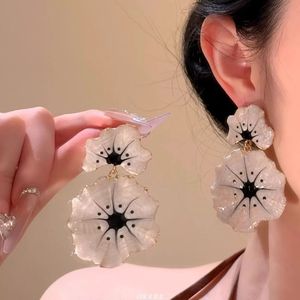 复古做旧滴釉银杏花耳环欧美夸张珐琅高级感耳坠小众个性气质耳饰