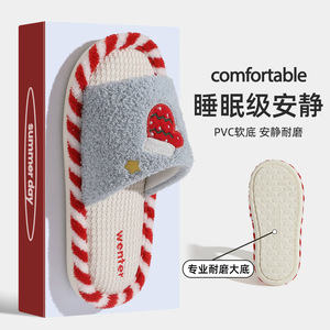 亚麻拖鞋女款四季透气吸汗家居室内棉拖防滑少女耐磨毛毛拖鞋批发