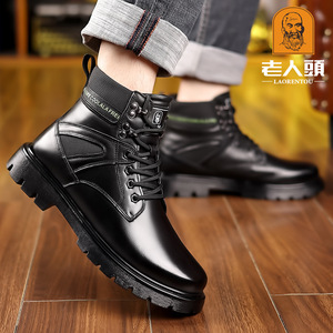 老人头头层牛皮马丁靴男真皮羊毛高帮休闲工装靴保暖棉鞋男雪地靴