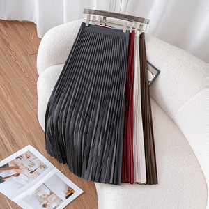 高级灰百褶裙半身裙女2025秋季高腰显瘦a字裙垂感中长款风琴裙子