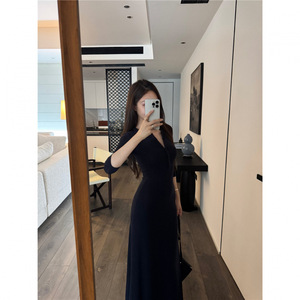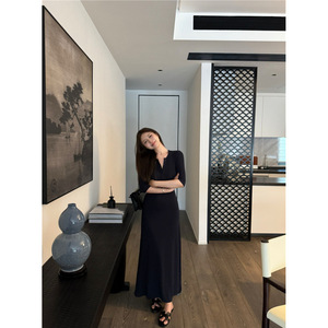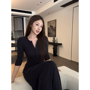忆可达【女神降临】中袖连衣裙早秋纯色弹力显瘦修身长裙