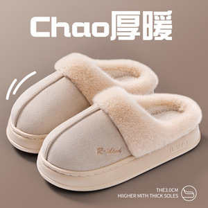 秋冬棉拖男毛绒拼色保暖鞋室内2025款情侣家居防滑厚底懒人棉拖女
