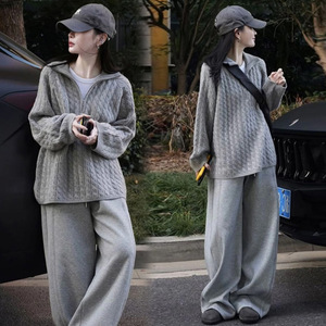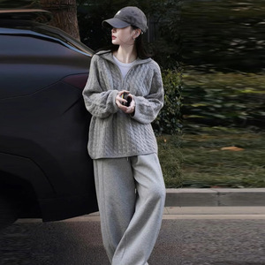 实拍现货~2025秋冬套装韩版时尚宽松慵懒风毛衣+休闲阔腿裤