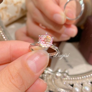 直播热卖托帕石烟花切戒指女时尚轻奢镶嵌高碳钻粉钻指环手饰批发
