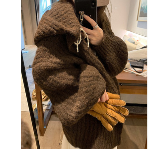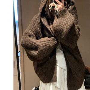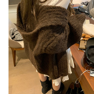 法式氛围感咖色连帽毛衣外套女秋冬季软糯奶呼呼气质高级针织开衫