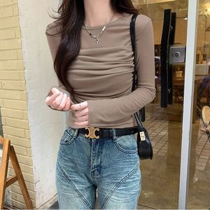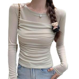 网纱长袖t恤女装秋季设计感小众修身打底衫薄款内搭紧身短款上衣