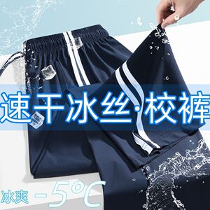 超薄冰丝校服裤子薄款藏蓝色透气夏季学生直筒运动宽松男女校裤