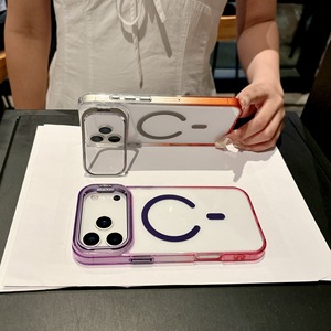 苹果17promax手机壳高透磁吸适用iPhone16镜头支架渐变色简约硬壳