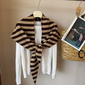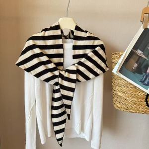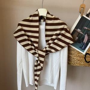 松弛感条纹披肩加大秋冬新款保暖三角巾时髦叠穿羊毛针织围巾女潮