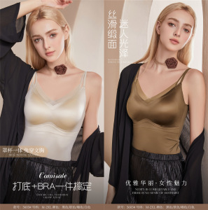 二合一免穿BRA缎面背心女西装内搭桑蚕丝吊带女外穿大码美背