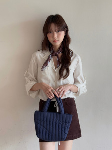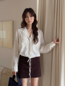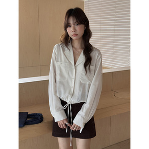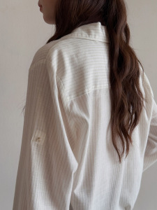 【柏油月亮】歌铭韩系通勤POLO领条纹衬衫秋季新款长袖上衣T1979F