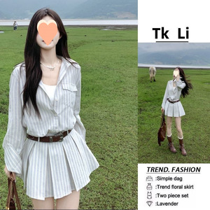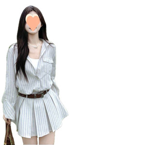 老钱风长袖条纹衬衫连衣裙修身气质压褶设计感收腰旷野遐想