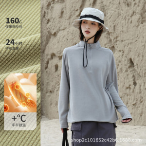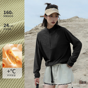 立领款方格抓绒卫衣女秋冬2025新款可外穿上衣休闲宽松保暖内搭