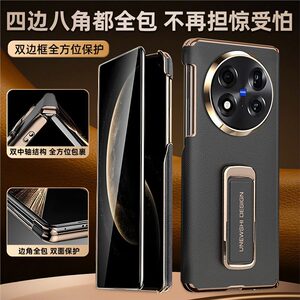 适用vivoxfold5手机壳真皮腕带旋转支架XFold5双中轴保护防摔硬壳