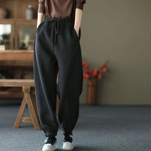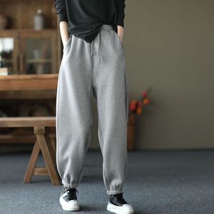 加绒加厚卫裤女2025秋冬新款纯色哈伦裤松紧腰束脚休闲运动裤长裤