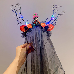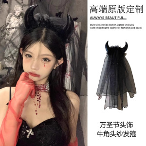 万圣节头饰暗黑系蝴蝶结鬼新娘头纱黑色发箍搞怪装扮恶魔发饰头箍