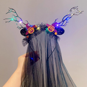 7#紫帽黑猫树枝发箍头纱【带灯】