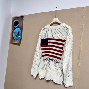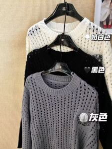 CH早秋新款旗帜针织T镂空针织毛衣圆领套头上衣设计感女款
