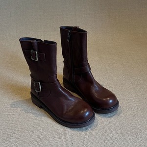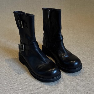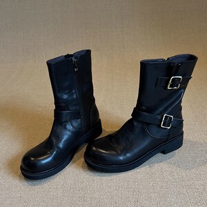 羊皮版~2025新款复古皮带扣厚底切尔西靴马丁靴女粗跟圆头短靴女