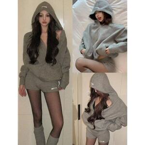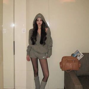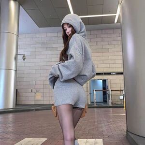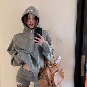 法式秋冬季灰色针织毛衣套装连衣裙子女新款小个子一整套深秋