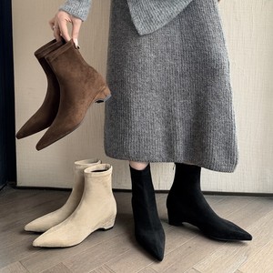 2025新款 弹力绒面尖头后拉链中跟短靴女 4cm粗跟简约韩版瘦瘦靴