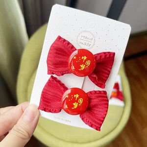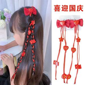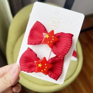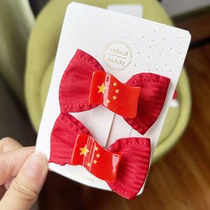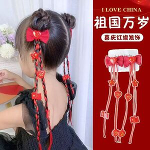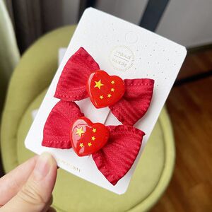 国庆节旗帜中国红心发夹头箍小礼品批发红旗元素蝴蝶结新中式