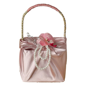 浅粉篮子+拉菲草+伴娘邀请卡-17.5x17.5x32cm
