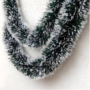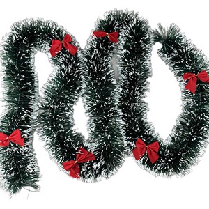 新款2米墨绿白边毛条绿圣诞节跨境装饰节日彩条拉花雪花边蝴蝶结