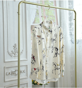 高端18姆米斜纹绸真丝衬衣赛马印花桑蚕丝衬衫女春秋新款长袖上衣