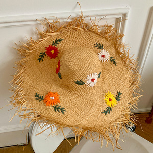法式拉菲草花朵草帽女夏季沙滩海边编织大帽檐太阳帽子遮阳防晒帽