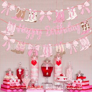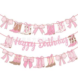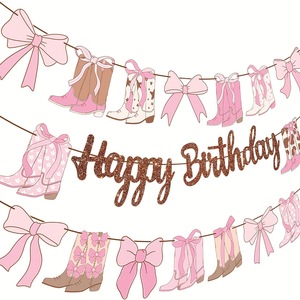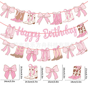 3pcs复古牛仔派对生日快乐主题横幅创意风粉色生日主题派对装饰