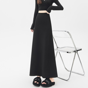 实拍 黑色西装半身裙女2025秋季新款高腰显瘦垂感a字裙中长款伞裙