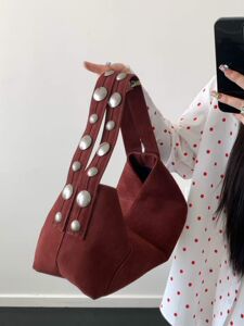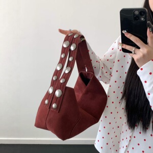 复古磨砂牛皮铆钉包波西米亚风真皮铆钉饭盒包慵懒风通勤腋下包女