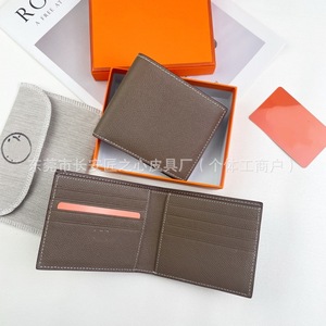 H缝线真皮长款钱包两折多卡位皮夹证件机票零钱收纳钱夹男女大容
