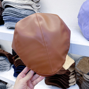 批发韩国2025年早秋新款PU皮小众前进帽子女英伦复古大头围贝雷帽