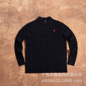 拉夫小马麻花毛衣标复古半拉链男女宽松慵懒风战马刺绣针织衫上衣