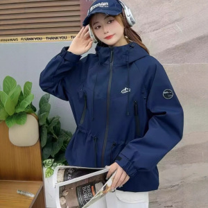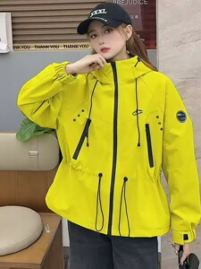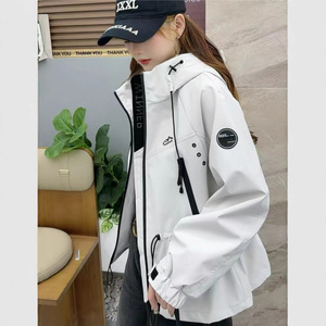 韩版时尚连帽冲锋衣外套女2025秋季新款潮流百搭显瘦工装夹克上衣