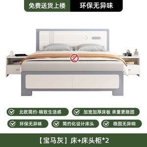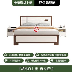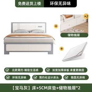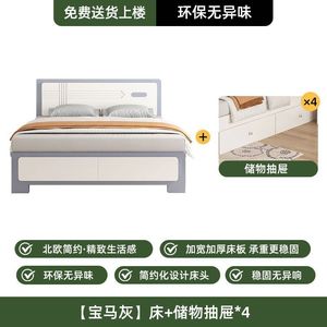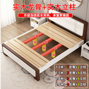 现代简约1.5m家用实木床主卧双人床1.8米出租房储物床小户型1.2米
