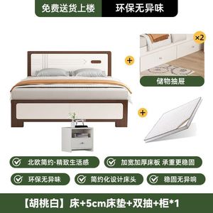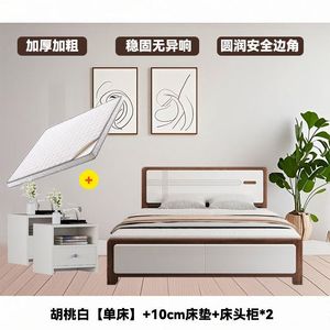 床垫10cm+底抽*2边柜*2丨胡桃白