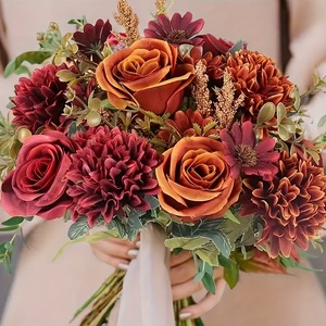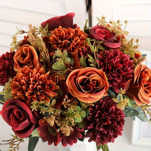 七头玫瑰秋色亚马逊 装饰仿真花束户外家居仿真花万圣跨境可代发