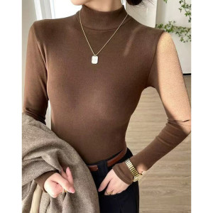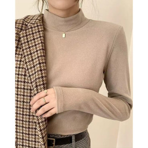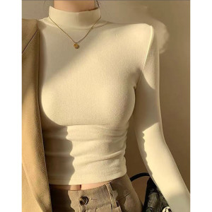 半高领长袖修身打底衫秋冬2025加厚磨毛保暖内搭短款外穿T恤上衣