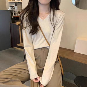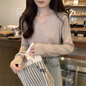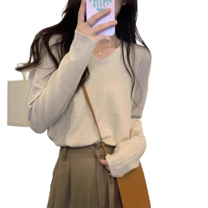 秋冬季2025新款韩版长袖V领套头内搭打底针织衫女宽松毛衣上衣
