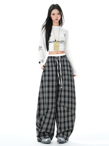十三行·芸和鱼早秋款双腰头慵懒感格纹弯刀松弛感宽松垂感阔腿裤